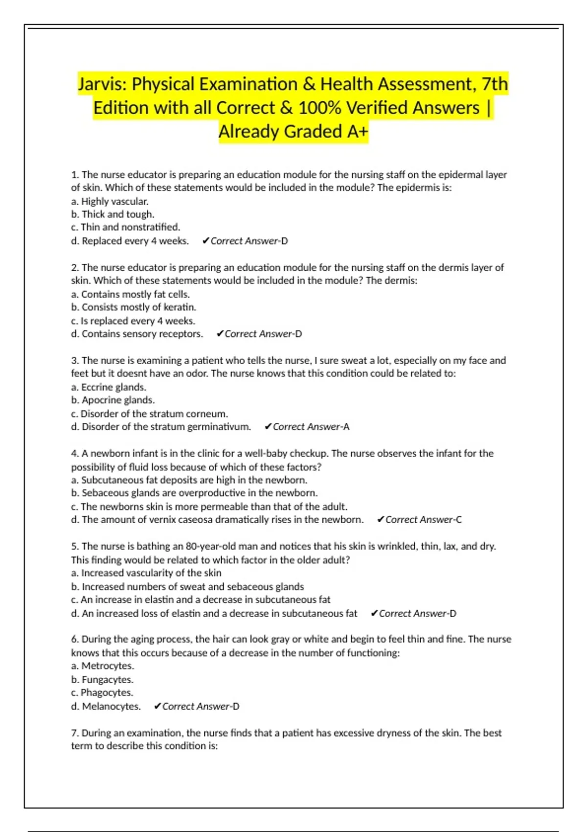 5. The nurse is bathing an 80-year-old man and notices that his skin is wrinkled, thin, lax, and dry.