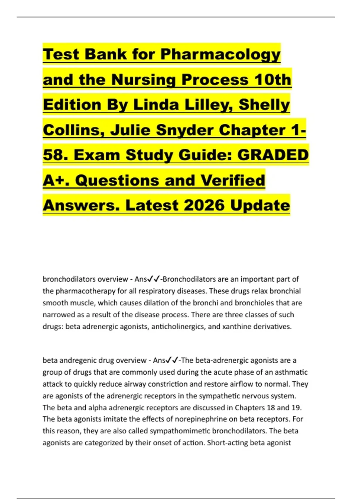 beta andregenic drug overview - Ans✔✔-The beta-adrenergic agonists are a