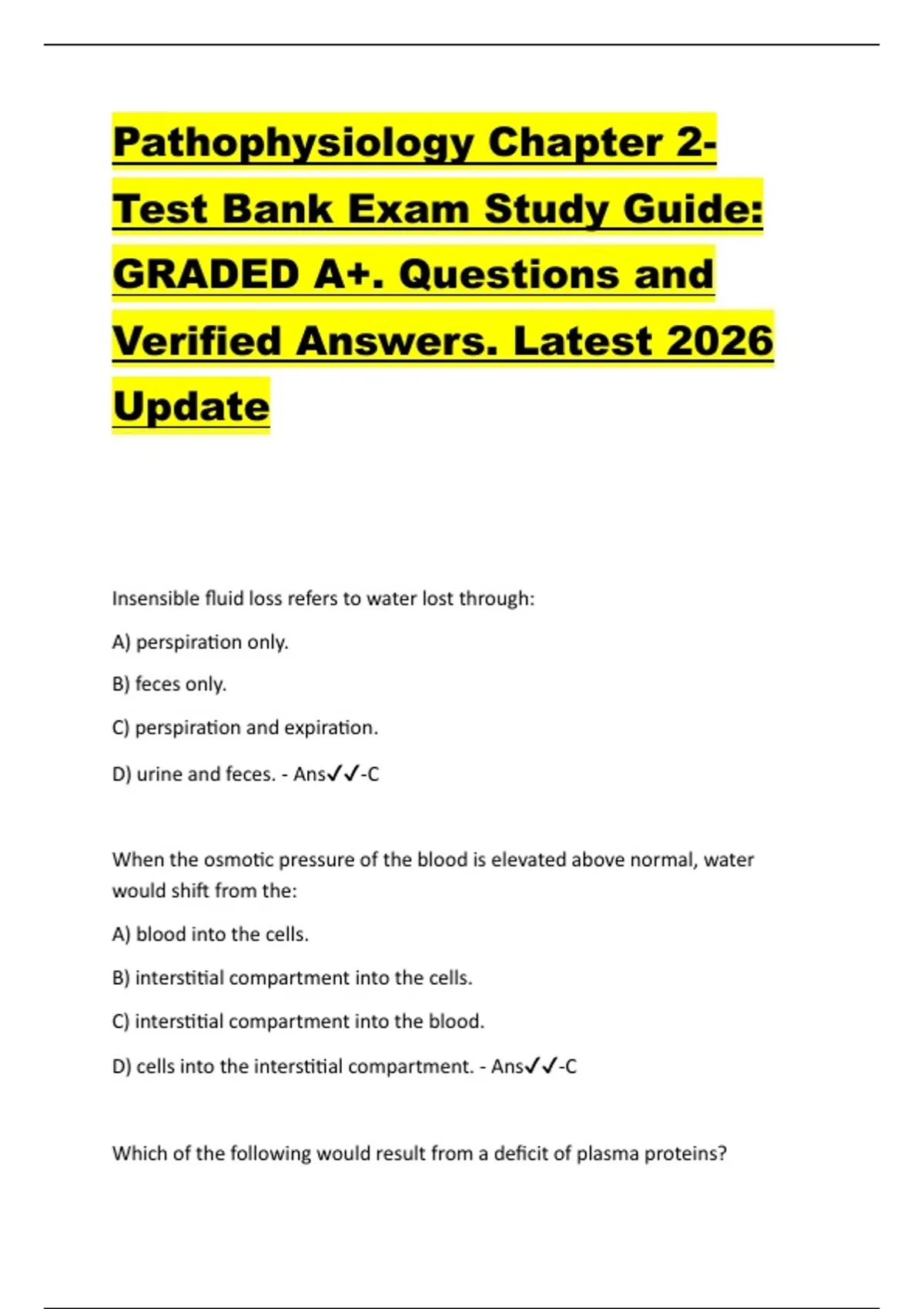 D) Decreased erythrocytes - Ans✔✔-B