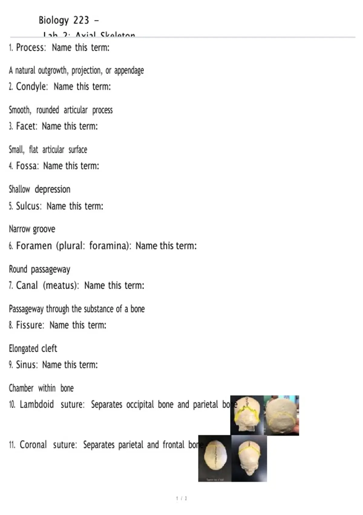 Biology 223 - Lab 2 Axial Skeleton Study Questions Questions and Answers 100% Correct