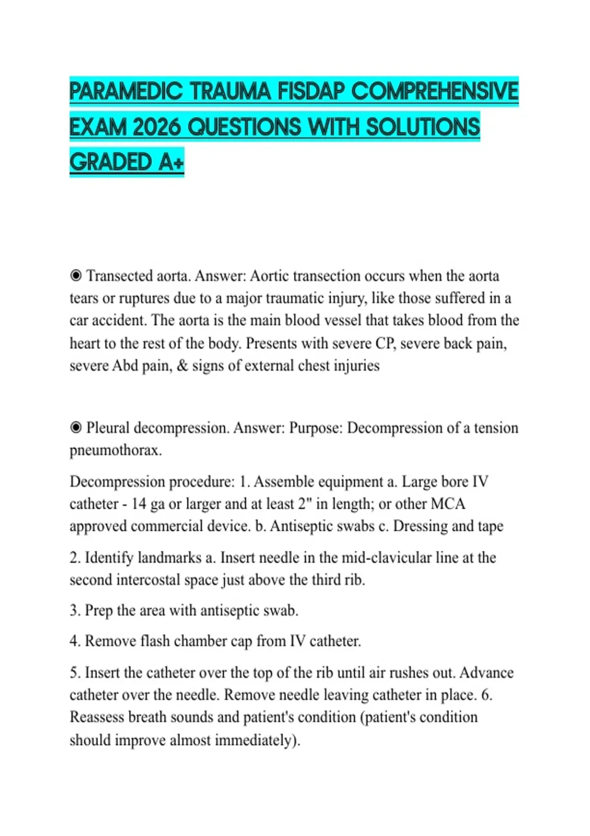 PARAMEDIC TRAUMA FISDAP COMPREHENSIVE EXAM 2026 QUESTIONS WITH SOLUTIONS GRADED A+