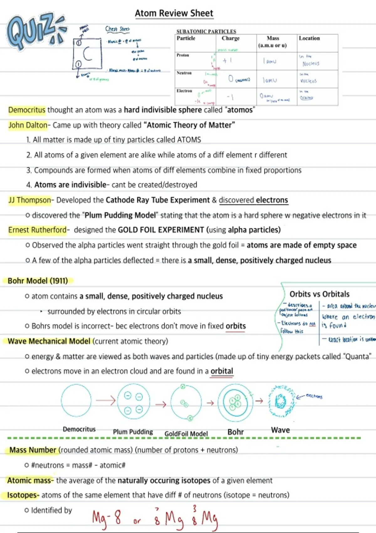 Isotopes- atoms of the same element that have diff # of neutrons (isotope = neutrons)