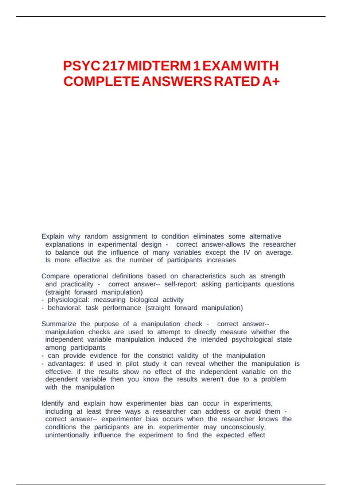 PSYC 217 MIDTERM 1 EXAM WITH bb bb bb bb bb