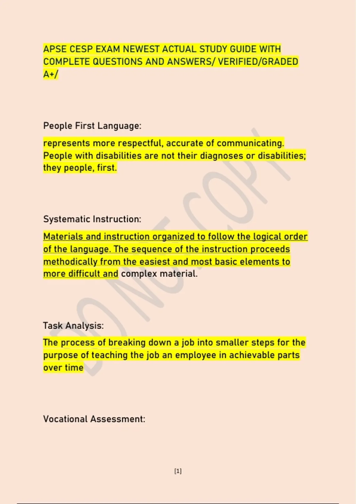 APSE CESP EXAM NEWEST ACTUAL STUDY GUIDE WITH COMPLETE QUESTIONS AND ANSWERS/ VERIFIED/GRADED A+/