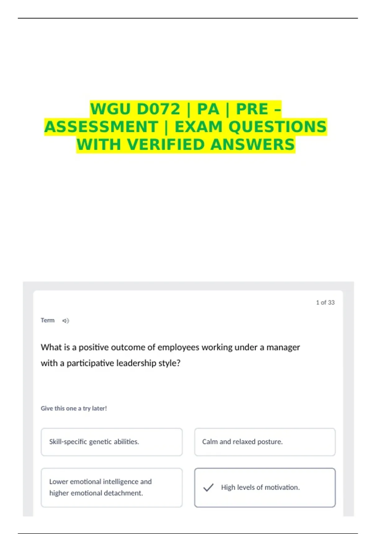 WGU D072 | PA | PRE – ASSESSMENT | EXAM QUESTIONS WITH VERIFIED ANSWERS