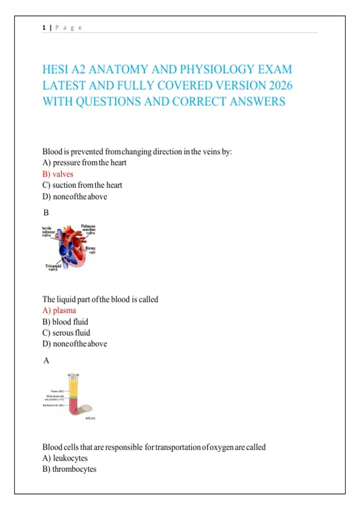 HESI A2 ANATOMY AND PHYSIOLOGY EXAM