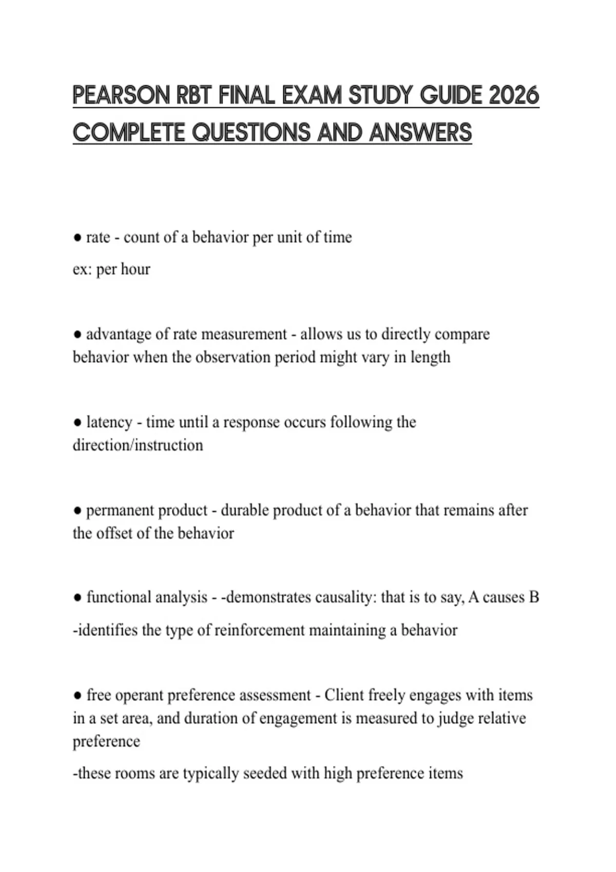 PEARSON RBT FINAL EXAM STUDY GUIDE 2026 COMPLETE QUESTIONS AND ANSWERS