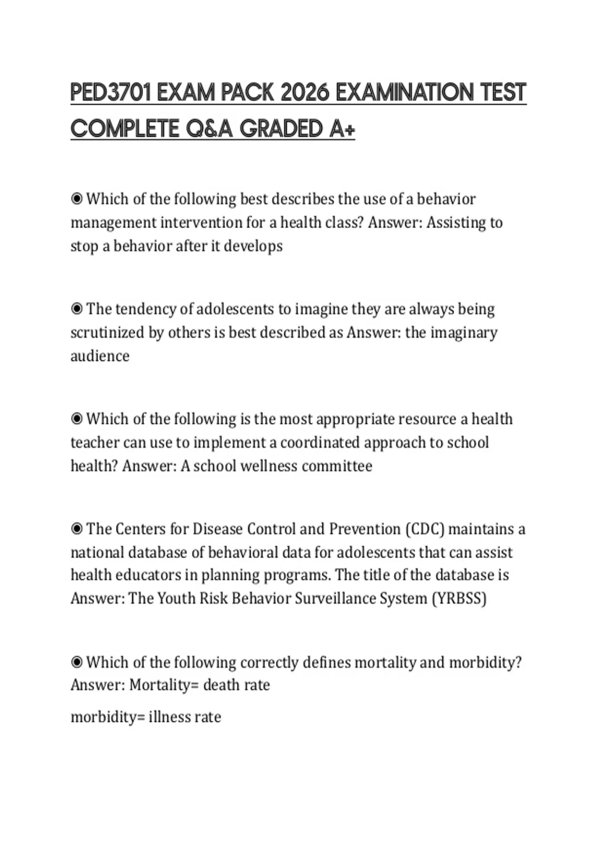 PED3701 EXAM PACK 2026 EXAMINATION TEST COMPLETE Q&A GRADED A+