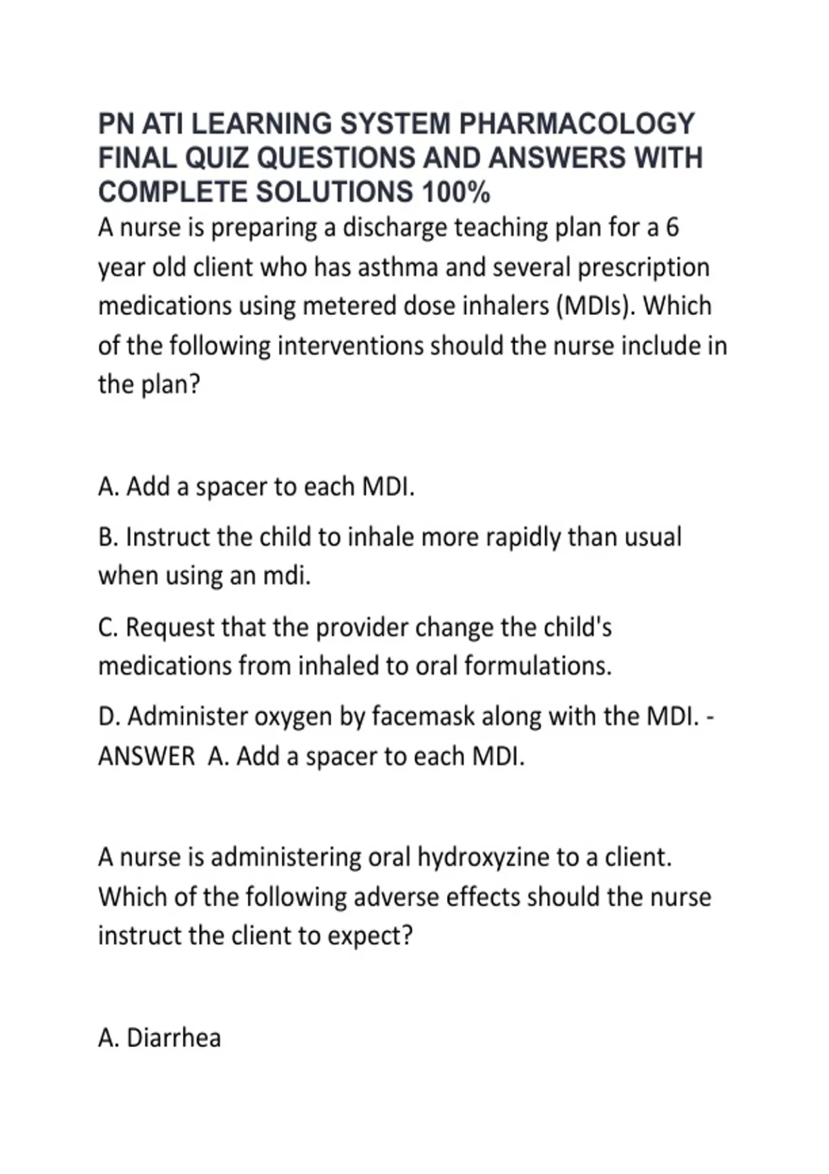 PN ATI LEARNING SYSTEM PHARMACOLOGY