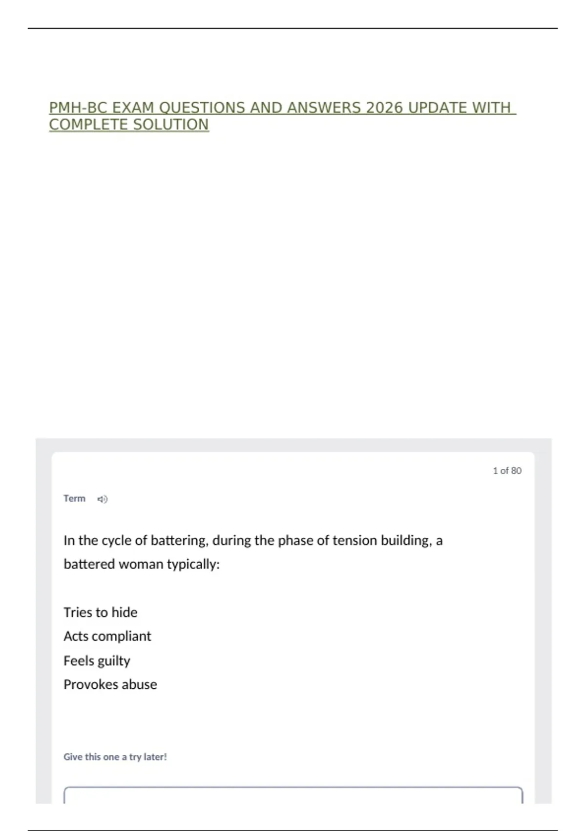 PMH-BC EXAM QUESTIONS AND ANSWERS 2026 UPDATE WITH COMPLETE SOLUTION