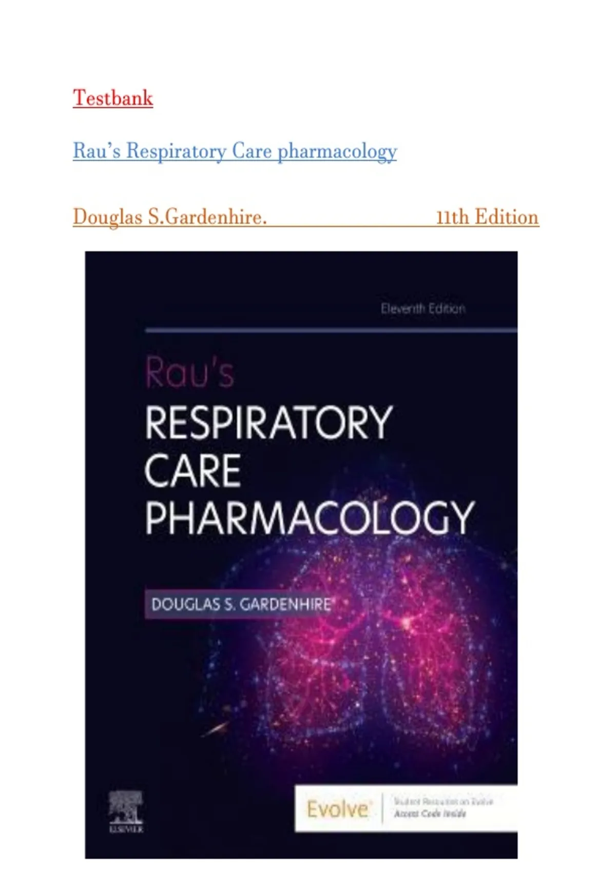 Test Bank For Rau's Respiratory Care Pharmacology 11th Edition by Douglas S. Gardenhire||Chapter 1-23||Complete Guide A+