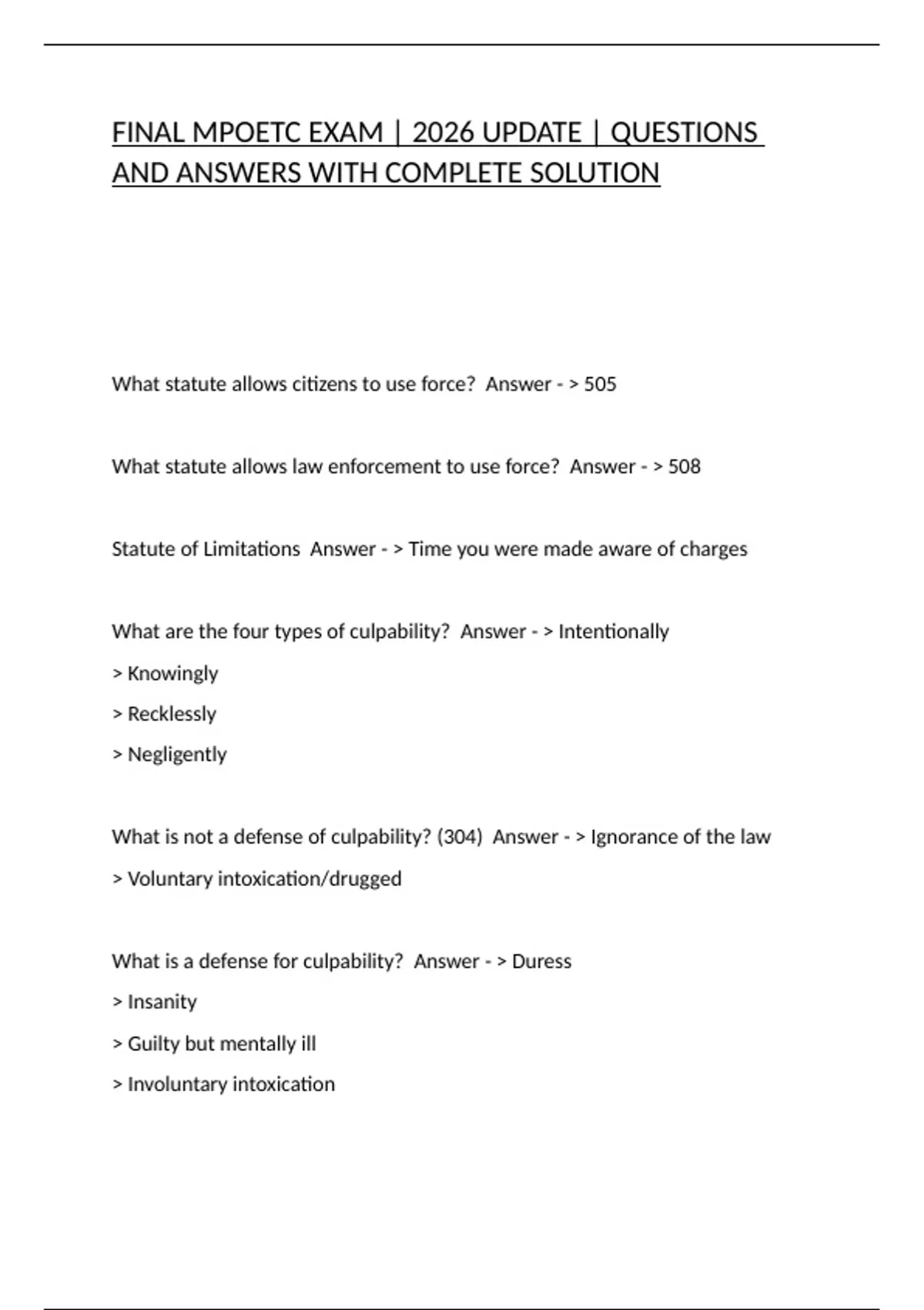 FINAL MPOETC EXAM | 2026 UPDATE | QUESTIONS AND ANSWERS WITH COMPLETE SOLUTION