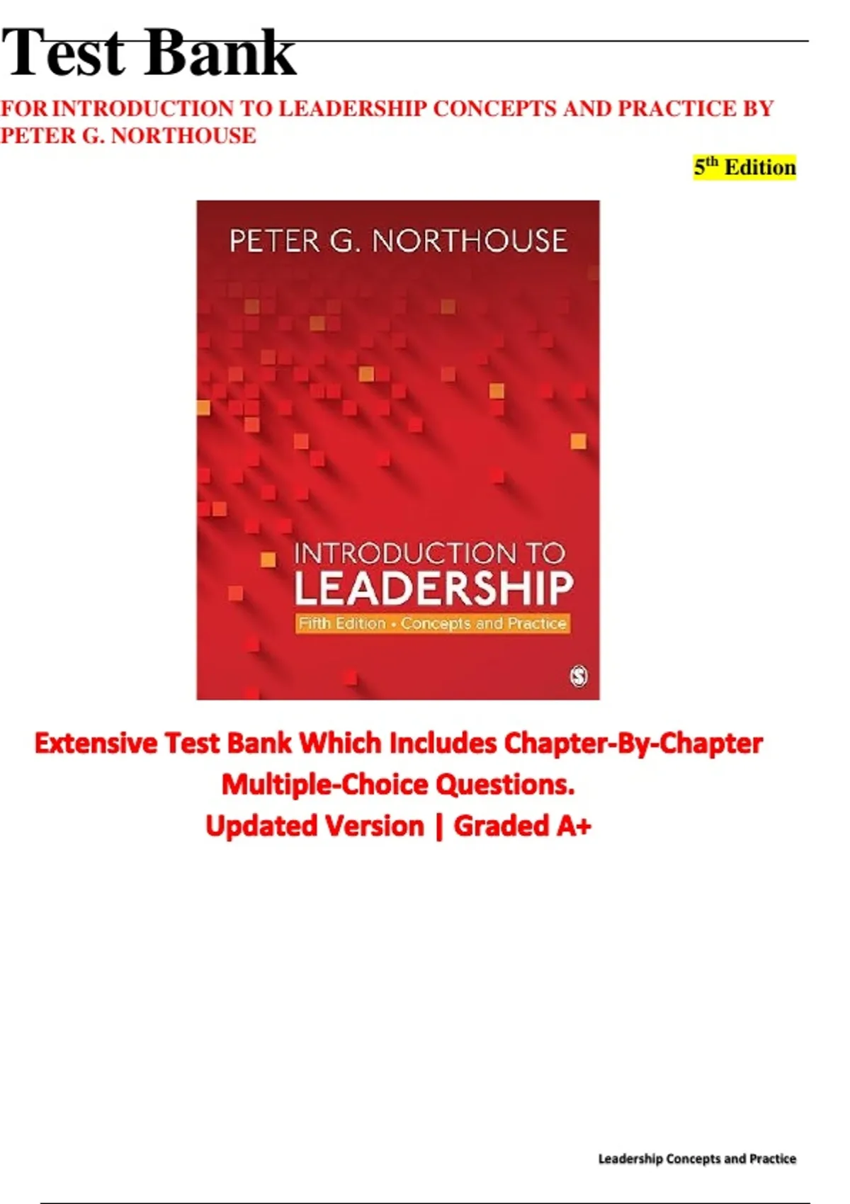FOR INTRODUCTION TO LEADERSHIP CONCEPTS AND PRACTICE BY