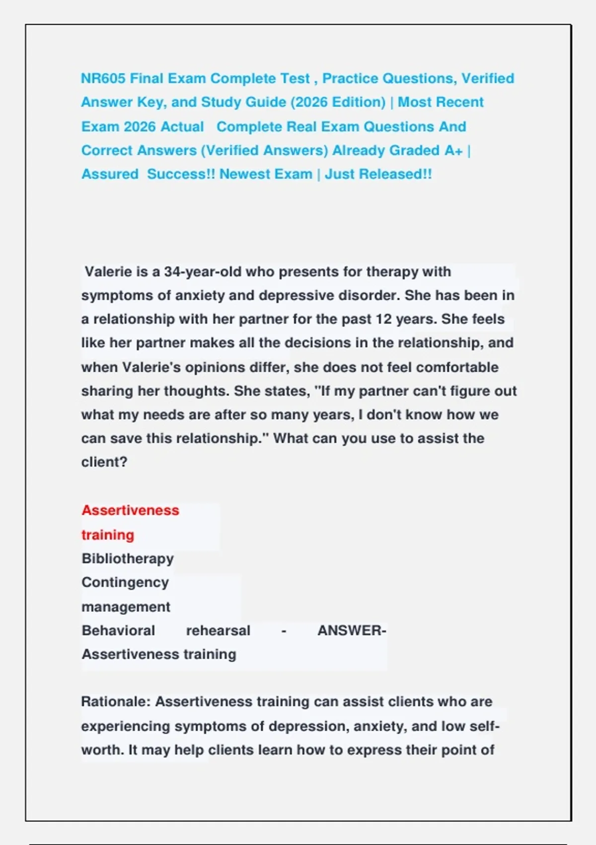 Rationale: Assertiveness training can assist clients who are