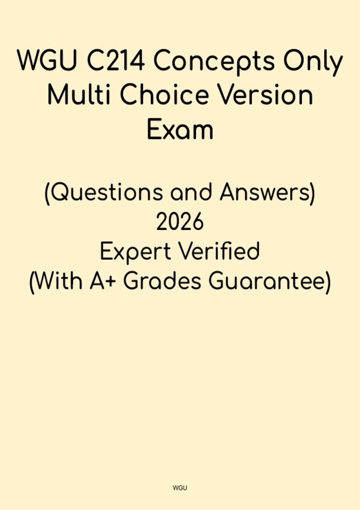 The WGU C214 Concepts Only – Multiple Choice Version is a targeted study resource designed to help Western Governors University students master the core financial management concepts tested on the Objective Assessment (OA). This guide focuses strictly on high-yield concepts presented in a multiple-choice format to support efficient review and exam readiness. Ideal for MBA and business students, this resource reinforces critical finance principles without unnecessary filler, making it perfect for quick review, concept reinforcement, and confidence-building before exam day.