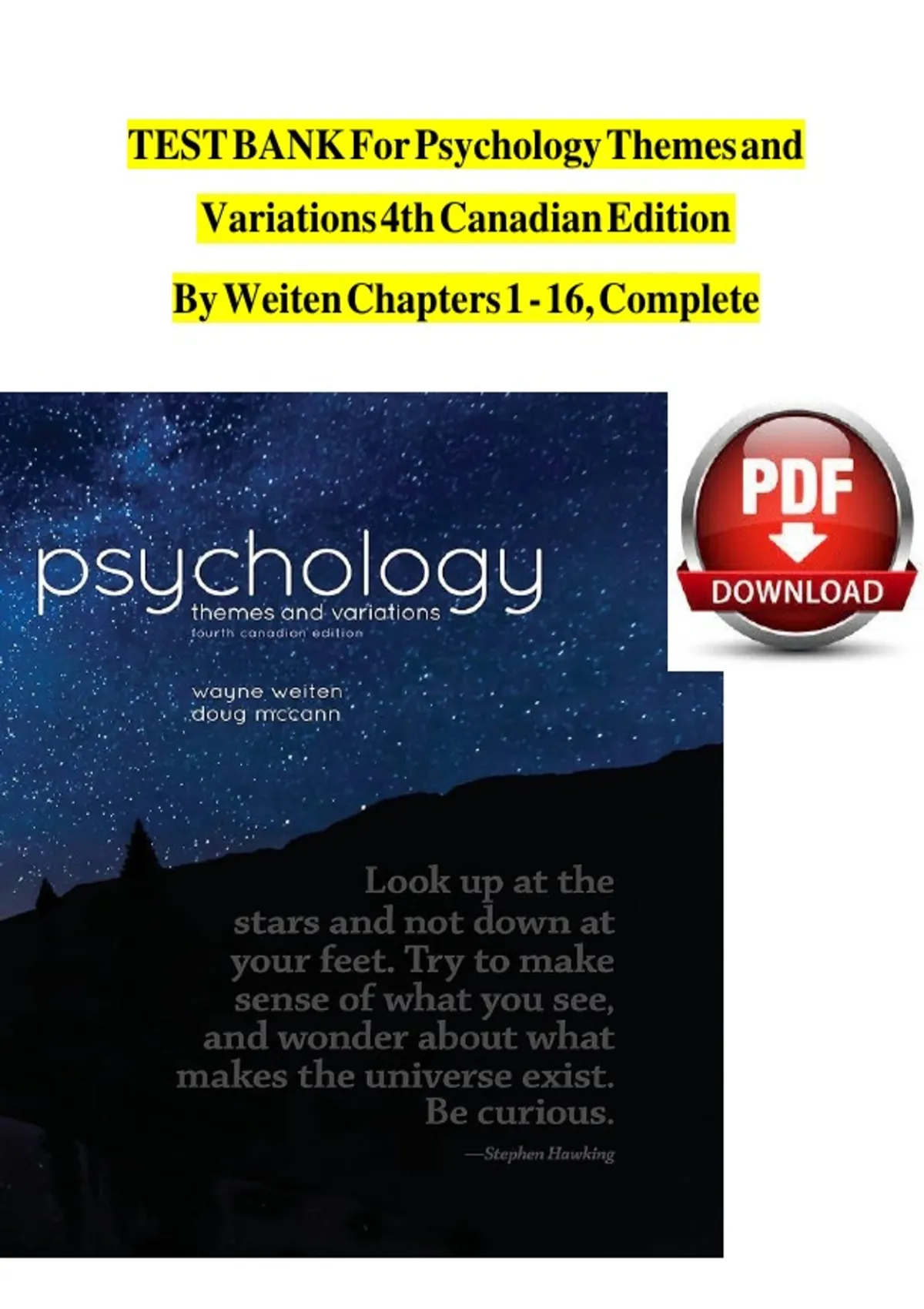 Test Bank for Psychology: Themes and Variations, 4th Canadian Edition by Weiten | Chapters 1–16 | Complete