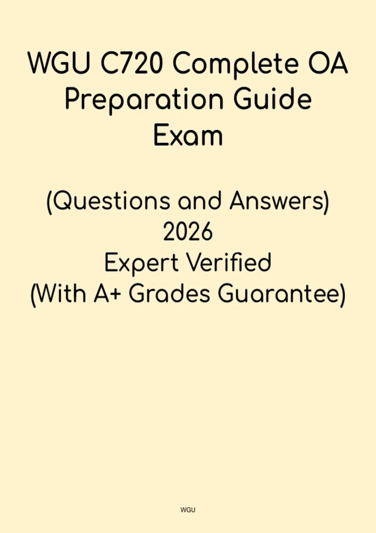 The WGU C720 Complete OA Prep Guide is a comprehensive study resource designed to help Western Governors University students pass the Objective Assessment (OA) with confidence. This guide includes detailed notes, key concept summaries, and practice questions that align with WGU competency requirements. Ideal for both first-time test takers and students preparing for a retake, this guide covers all major course topics in a clear and organized format to help you study efficiently and improve your exam performance.