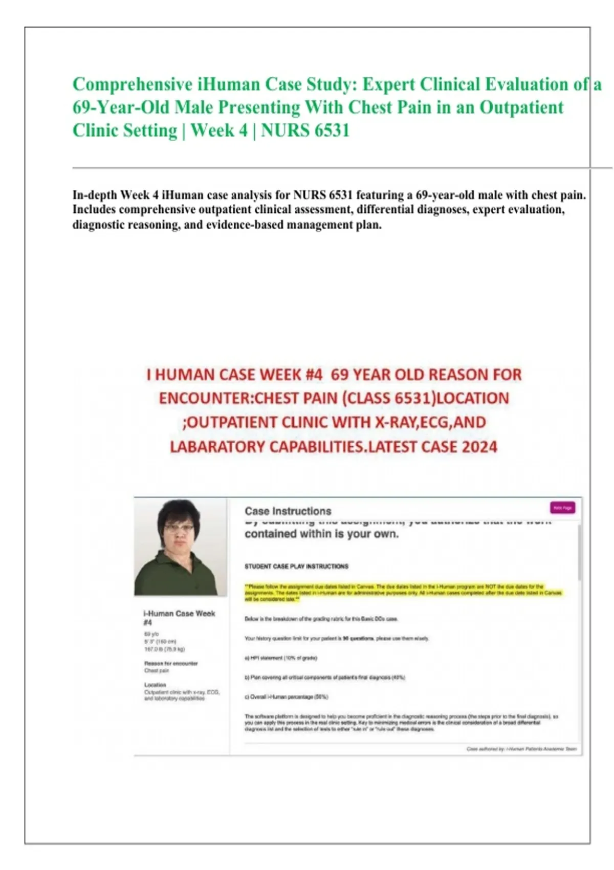 In-depth Week 4 iHuman case analysis for NURS 6531 featuring a 69-year-old male with chest pain.