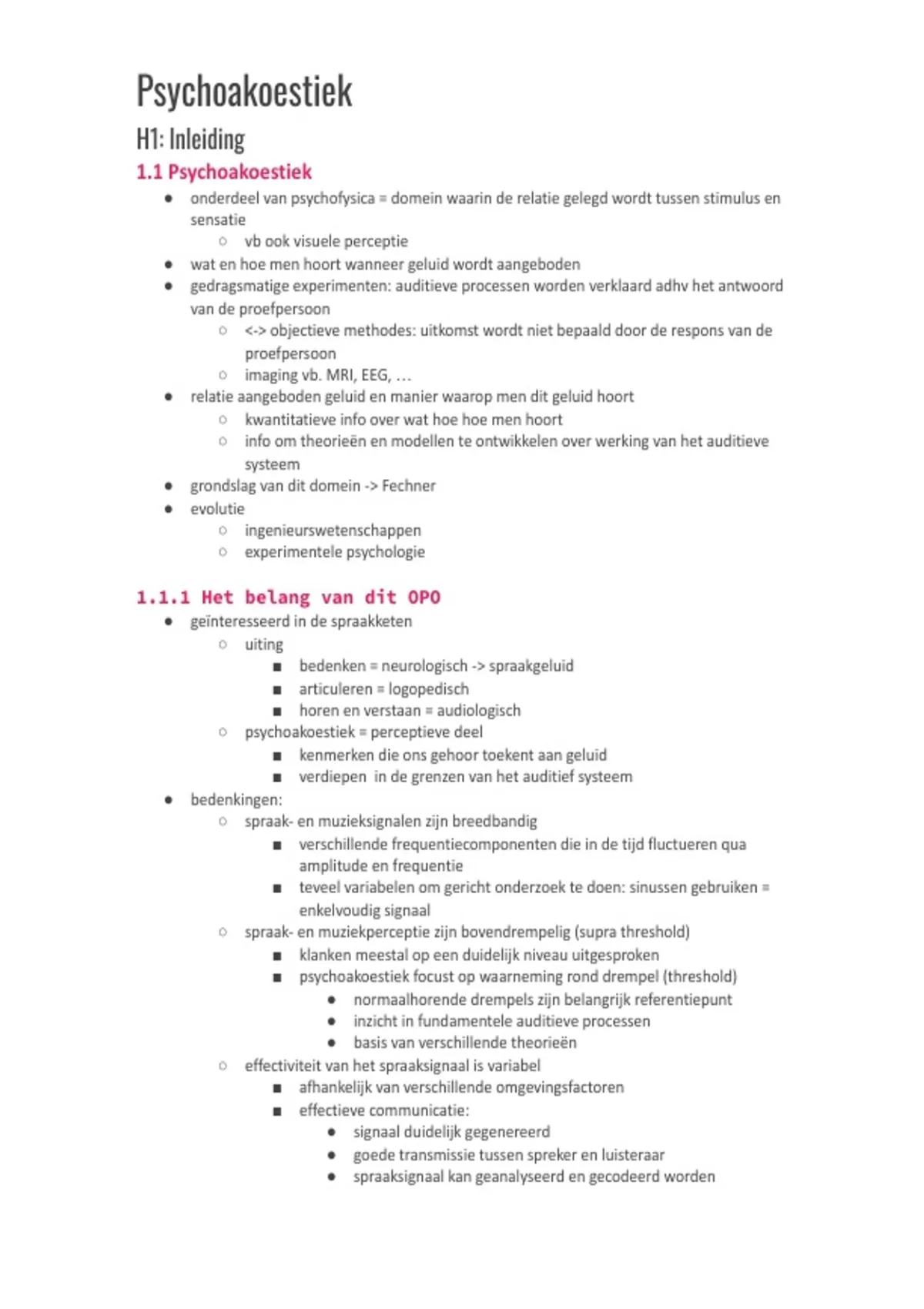 Samenvatting - Psychoakoestiek (E0F59A), logopedische en audiologische wetenschappen (KUL) - Fase 2