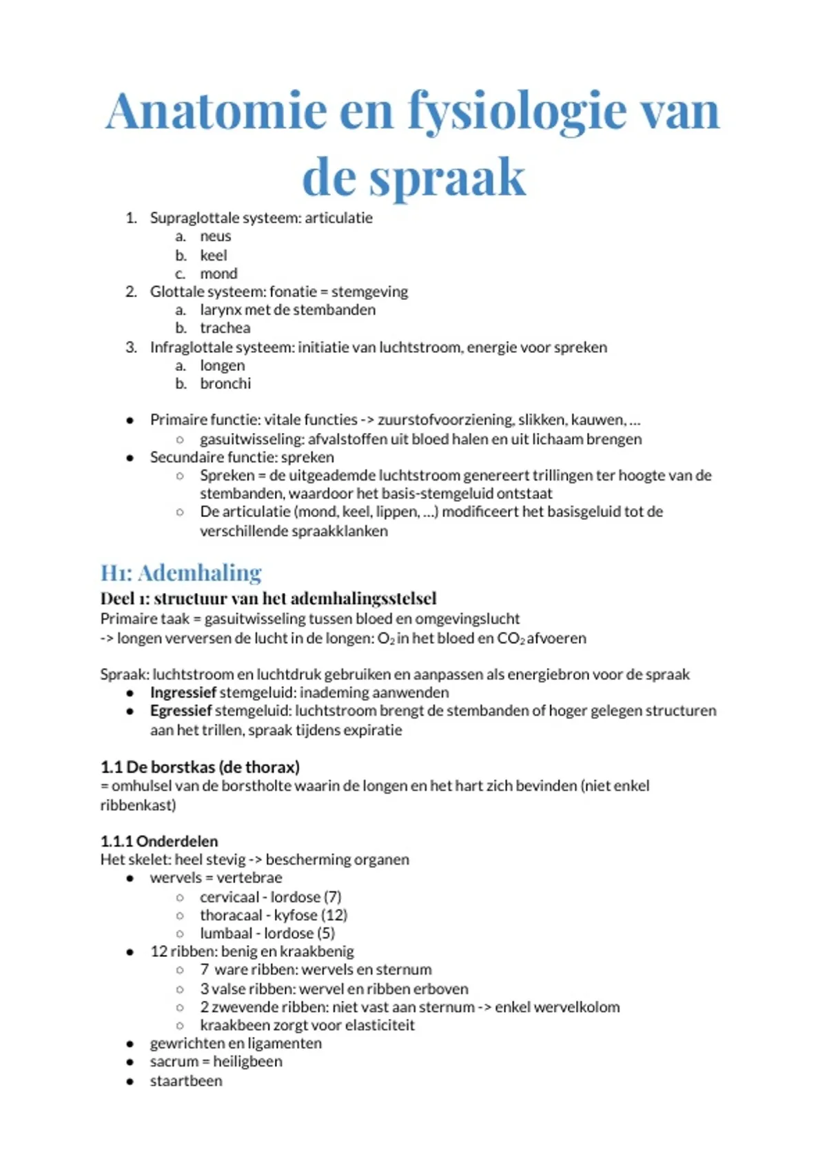 Samenvatting hoorcolleges anatomie en fysiologie LAW - logopedische en audiologische wetenschappen (KUL) - Fase 2