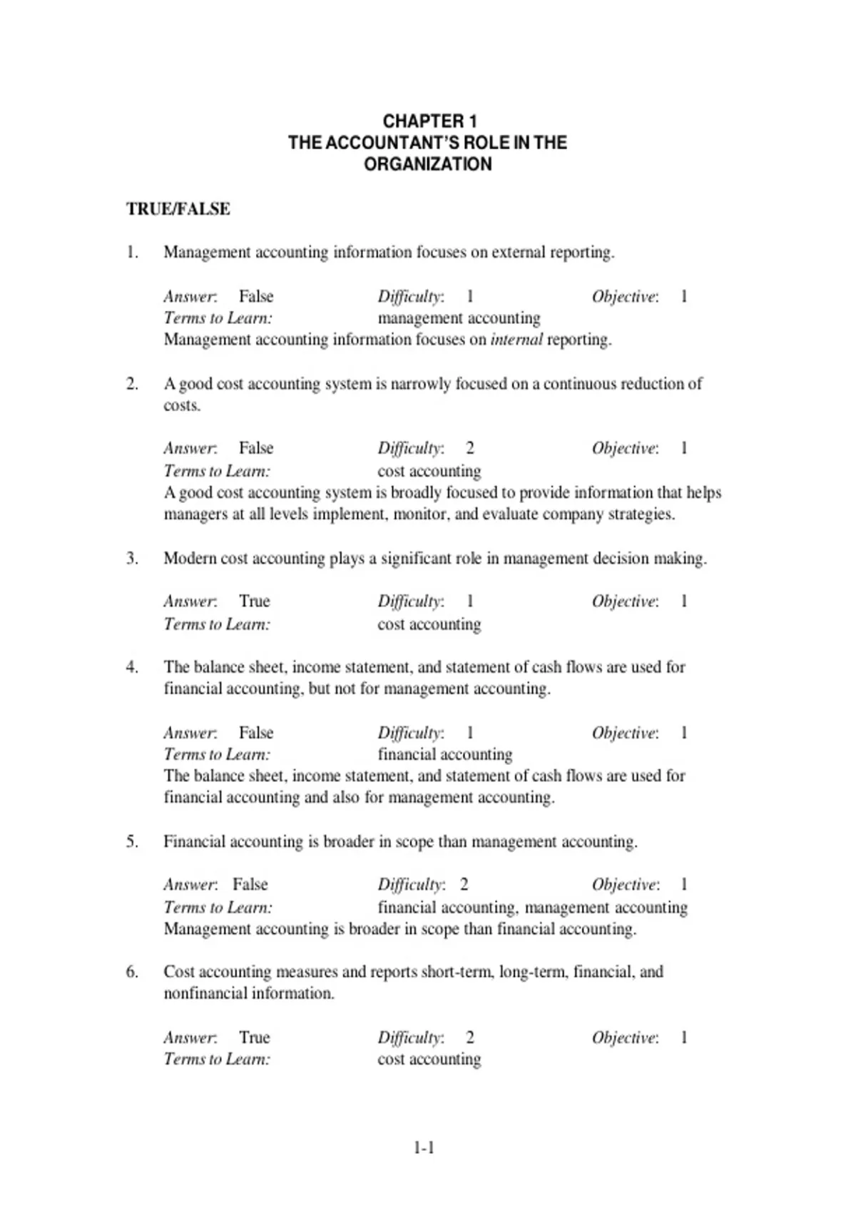 6. Cost accounting measures and reports short-term, long-term, financial, and