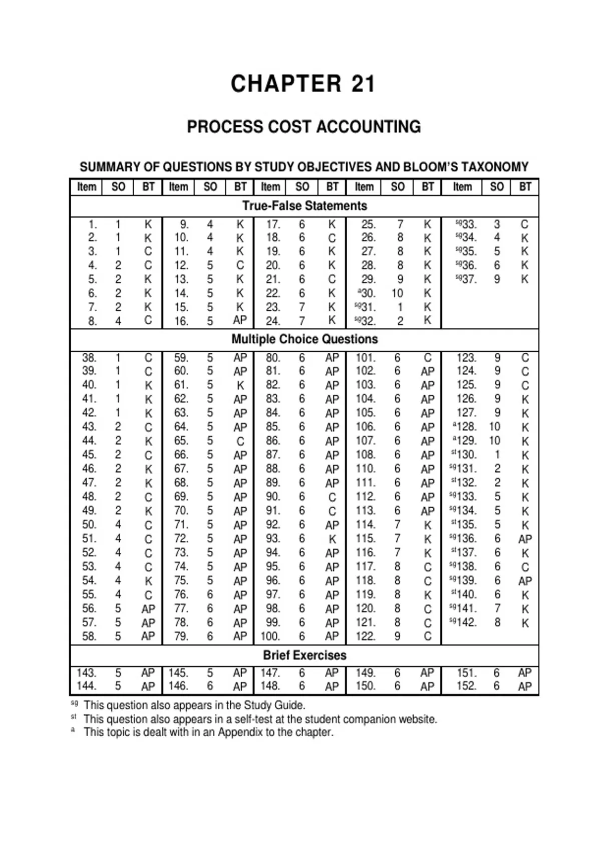 SUMMARY OF QUESTIONS BY STUDY OBJECTIVES AND BLOOM’S TAXONOMY