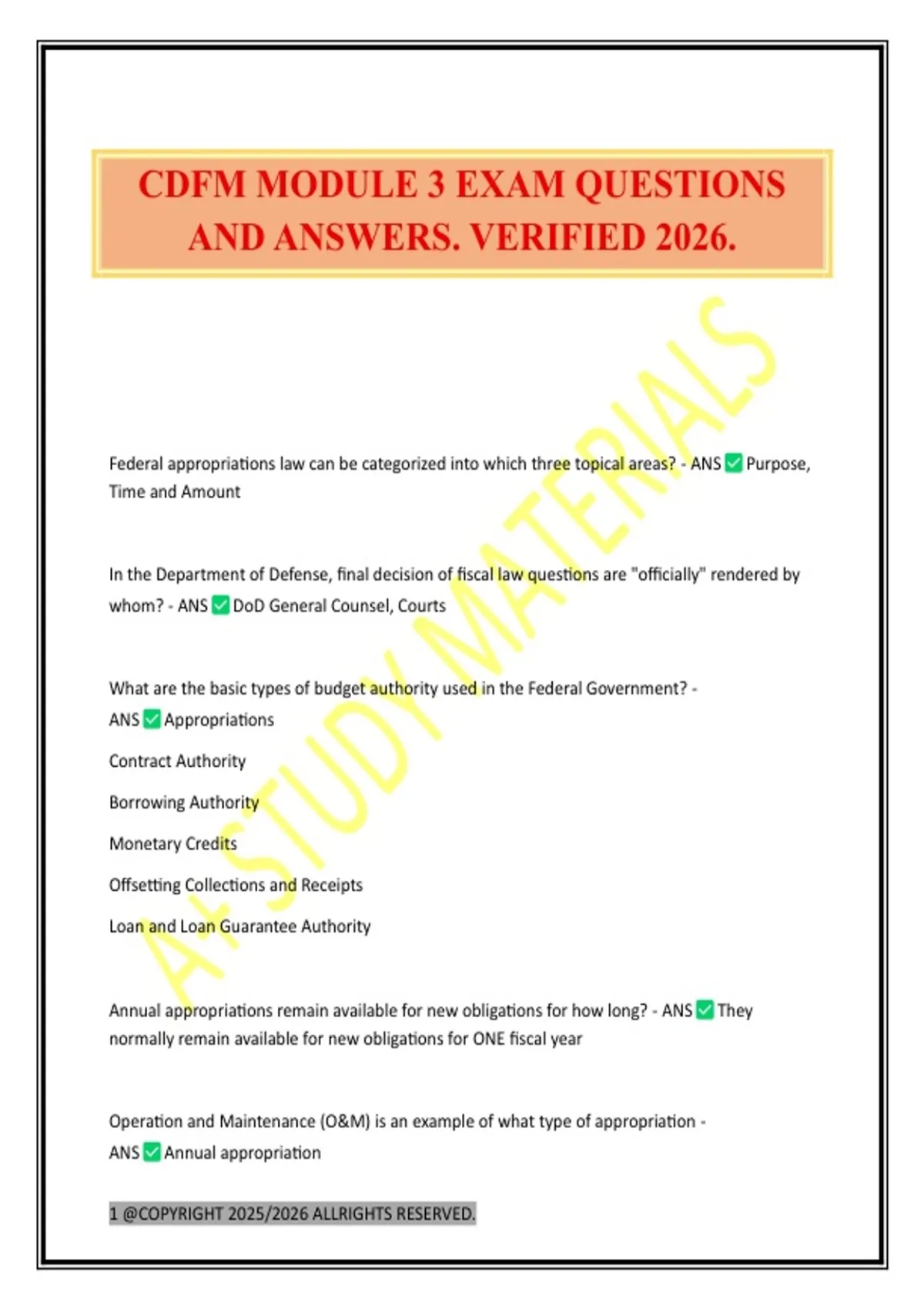 CDFM MODULE 3 EXAM QUESTIONS AND ANSWERS. VERIFIED 2026.