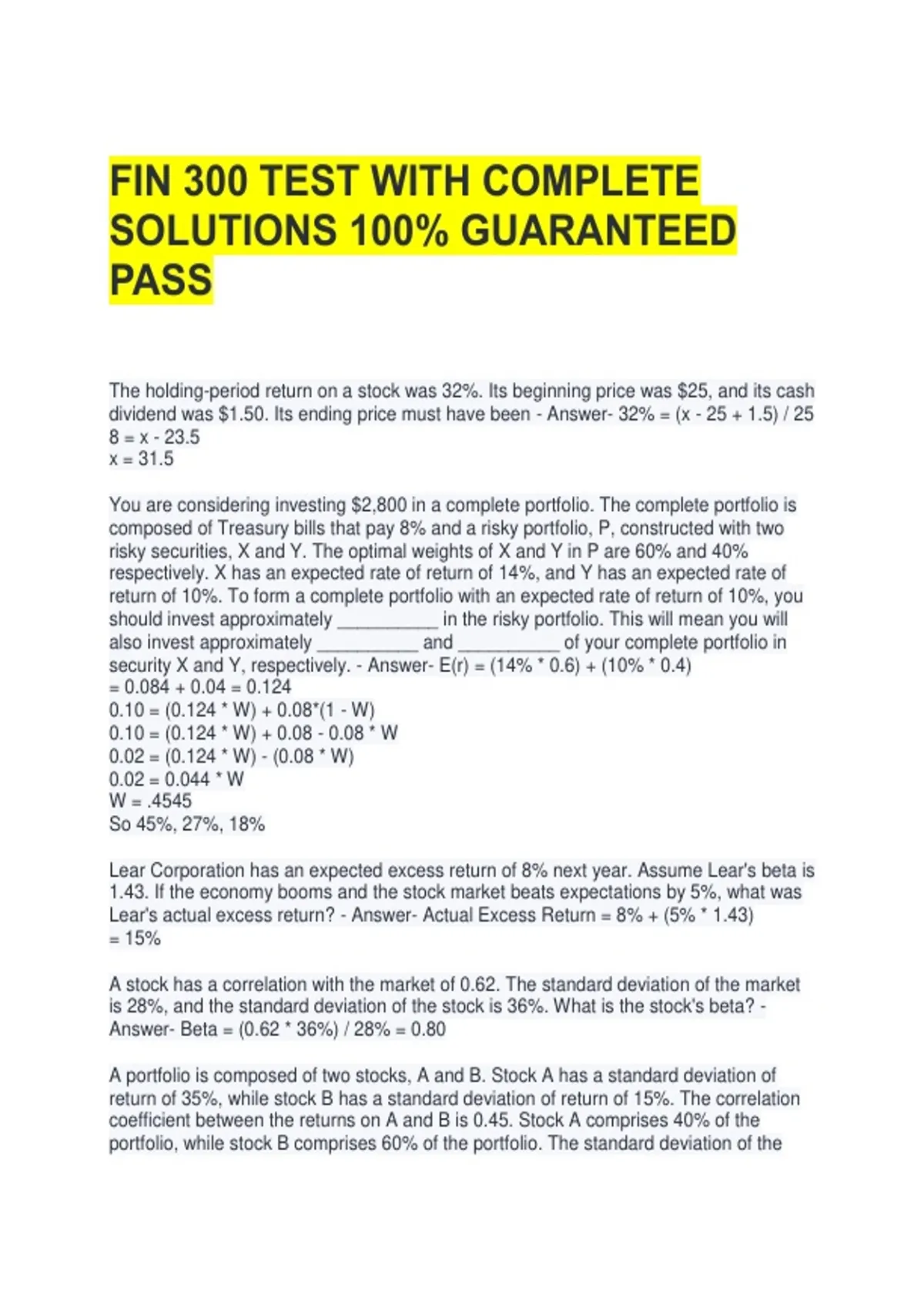 FIN 300 TEST WITH COMPLETE SOLUTIONS 100% GUARANTEED PASS