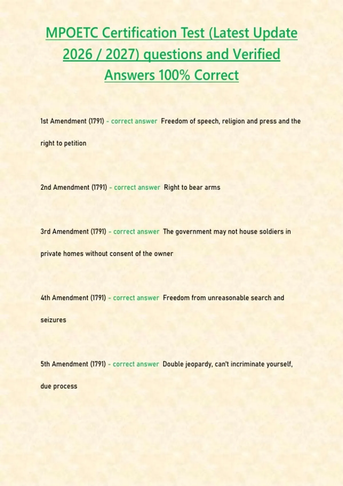 5th Amendment (1791) - correct answer Double jeopardy, can't incriminate yourself,