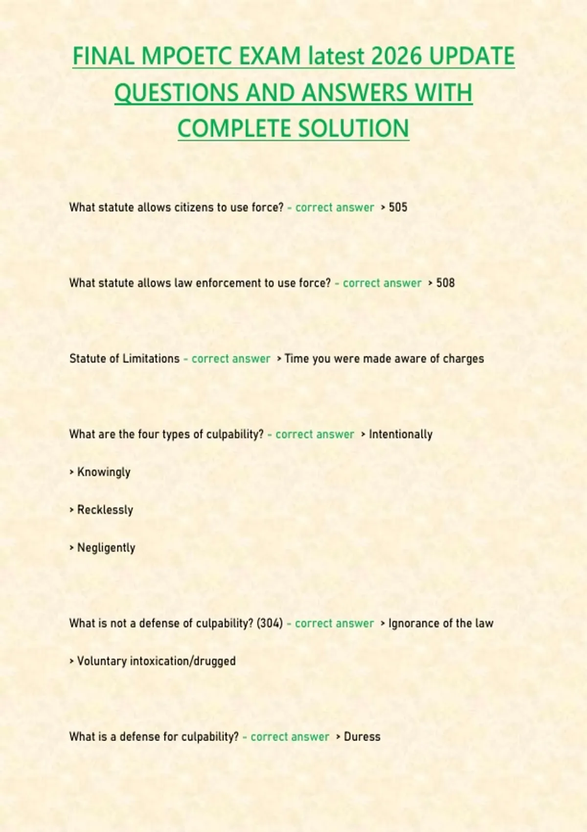 FINAL MPOETC EXAM latest 2026 UPDATE QUESTIONS AND ANSWERS WITH COMPLETE SOLUTION