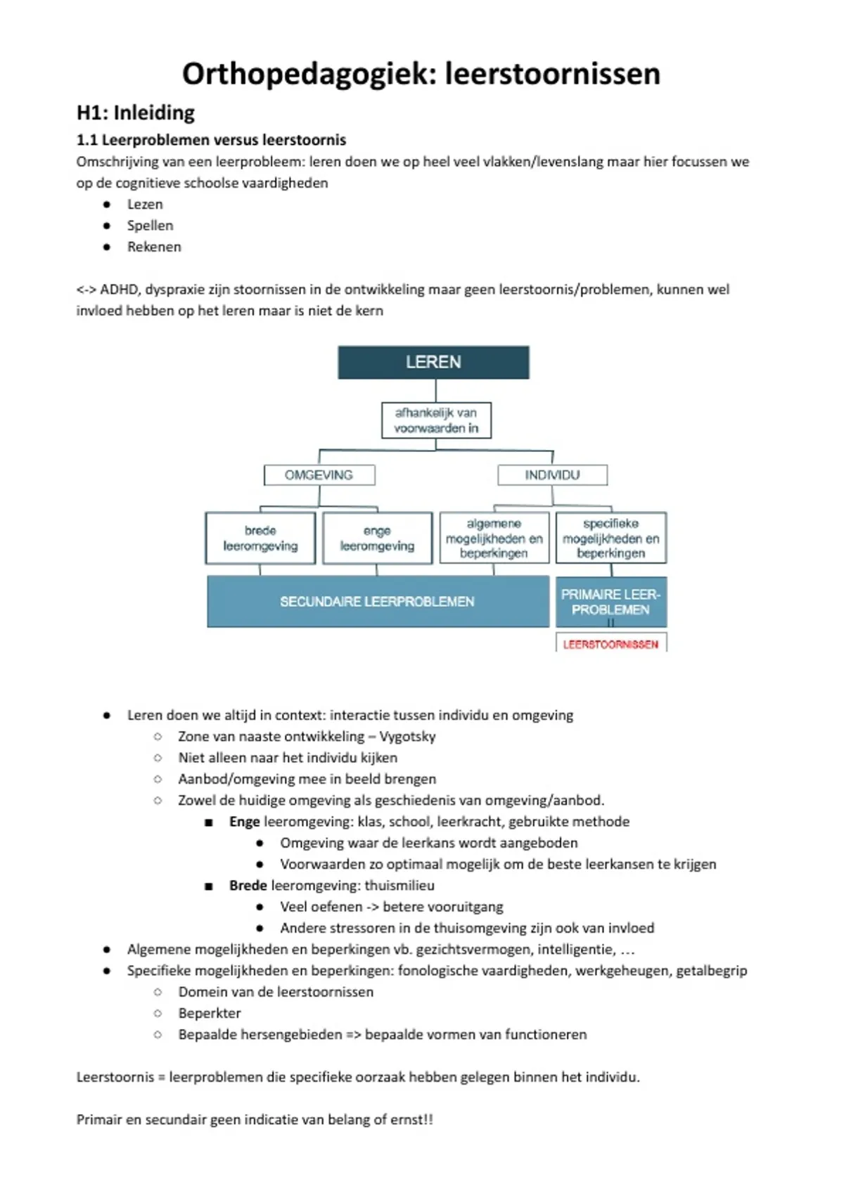 Samenvatting orthopedagogiek - logopedische en audiologische wetenschappen (KUL) - Fase 3