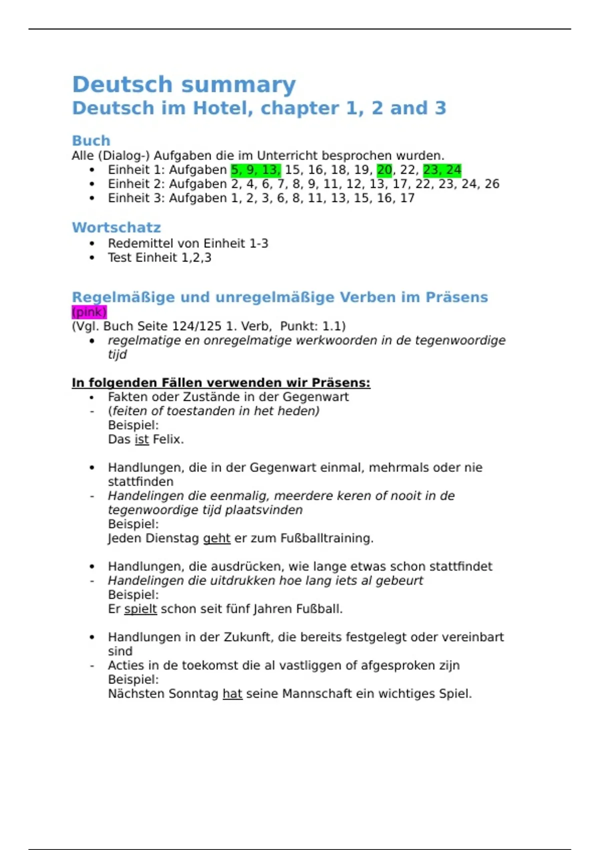 Complete Duitse samenvatting - Jaar 1 - Hotelmanagmant