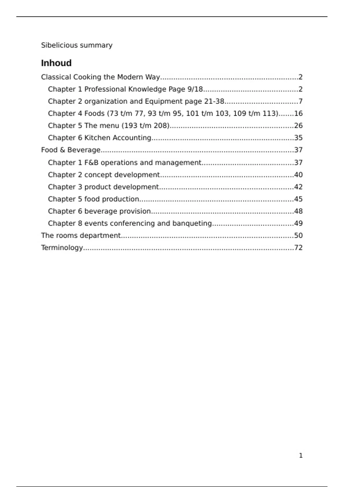 A complete, well‑structured summary of all SIB content: Classical Cooking the Modern Way, Food & Beverage Operations, Rooms Division, and all essential terminology. This document covers bacteria, food safety, kitchen organization, equipment, heating methods, purchasing, fish/meat classifications, menu theory, kitchen accounting, F&B management, concept development, product development, events, and more. Clear explanations, tables, definitions, and examples make it perfect for fast studying and confident exam preparation. Everything you need — in one organized document