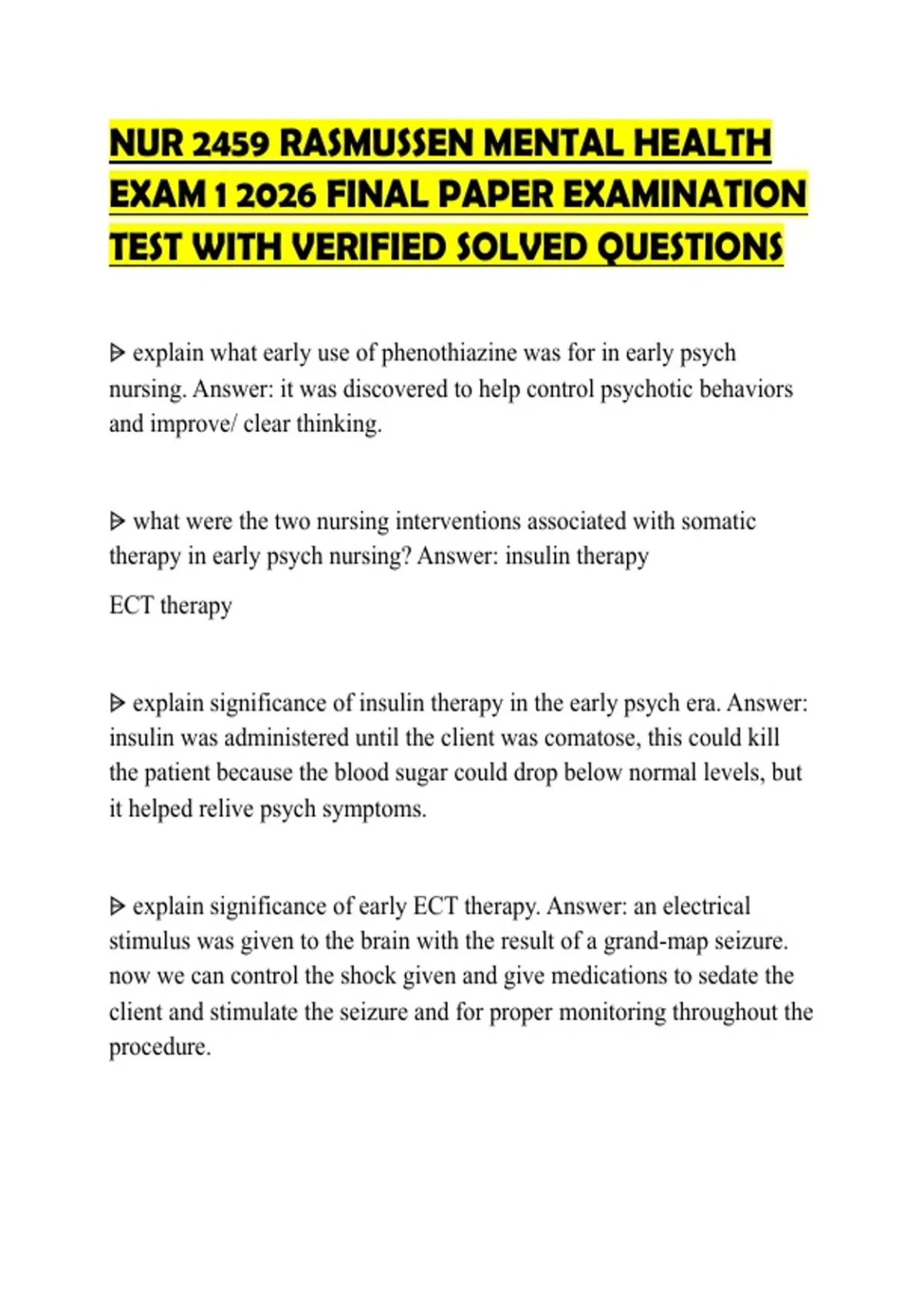 therapy in early psych nursing? Answer: insulin therapy