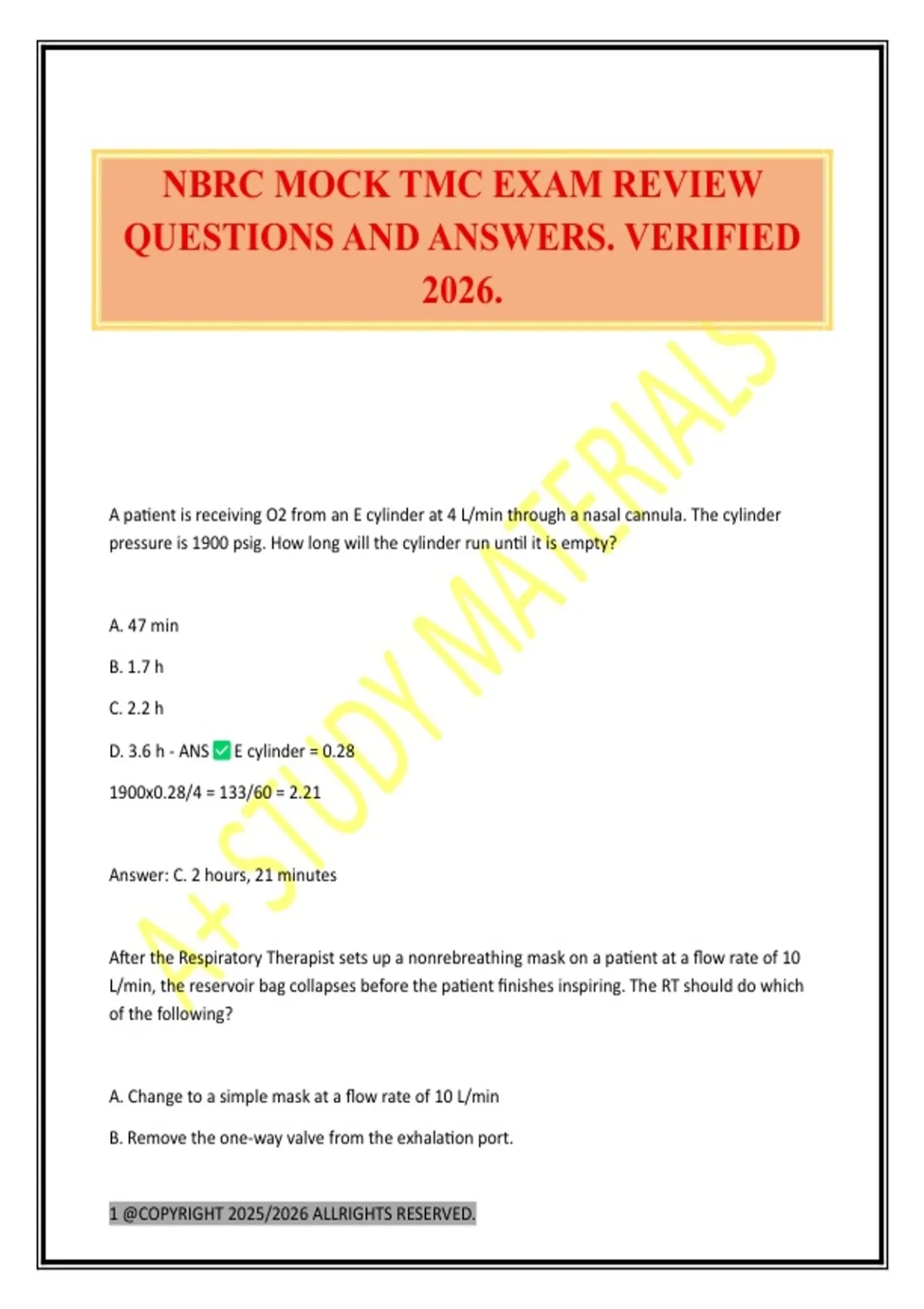 NBRC MOCK TMC EXAM REVIEW