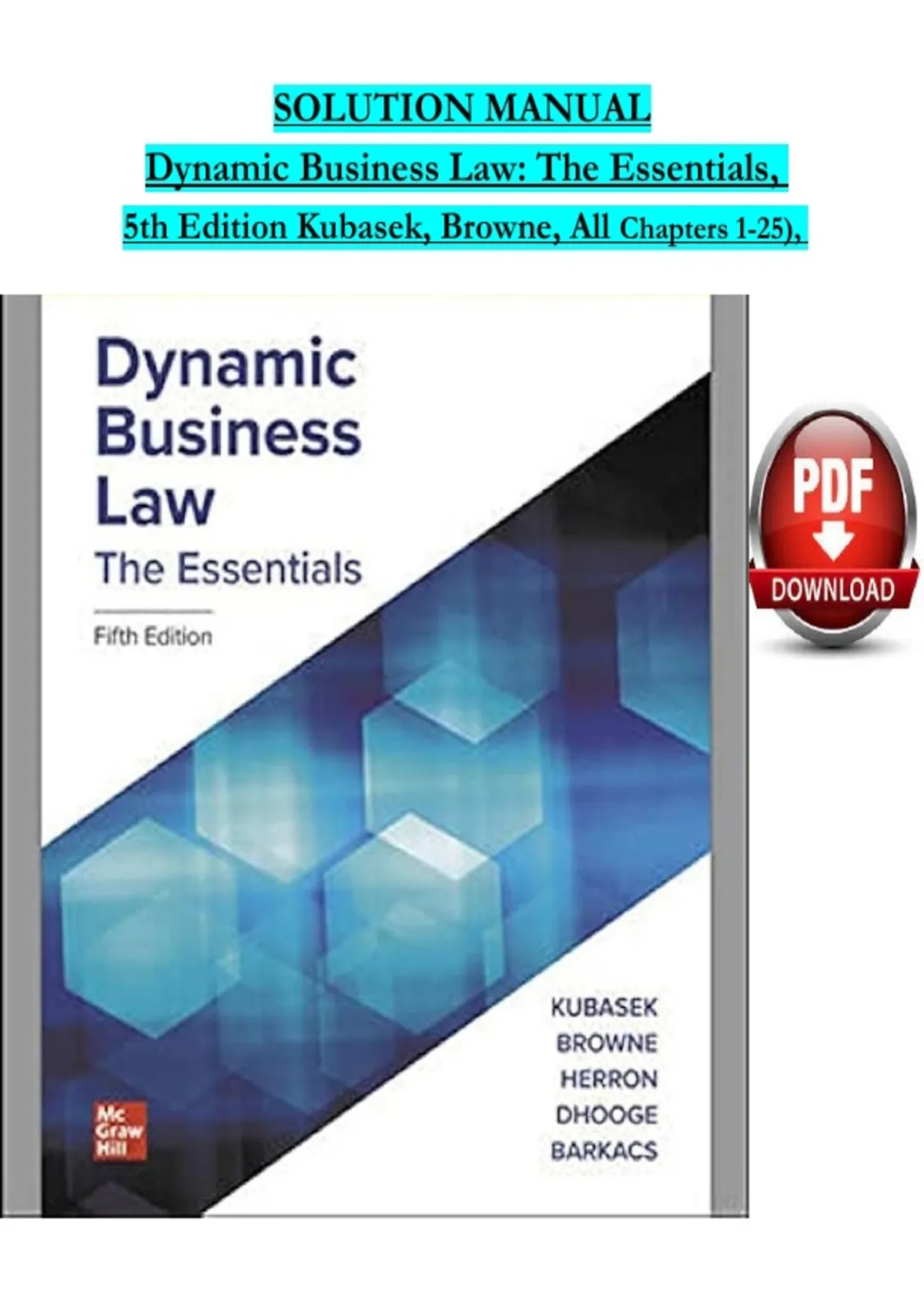 5th Edition Kubasek, Browne, All Chapters 1-25),
