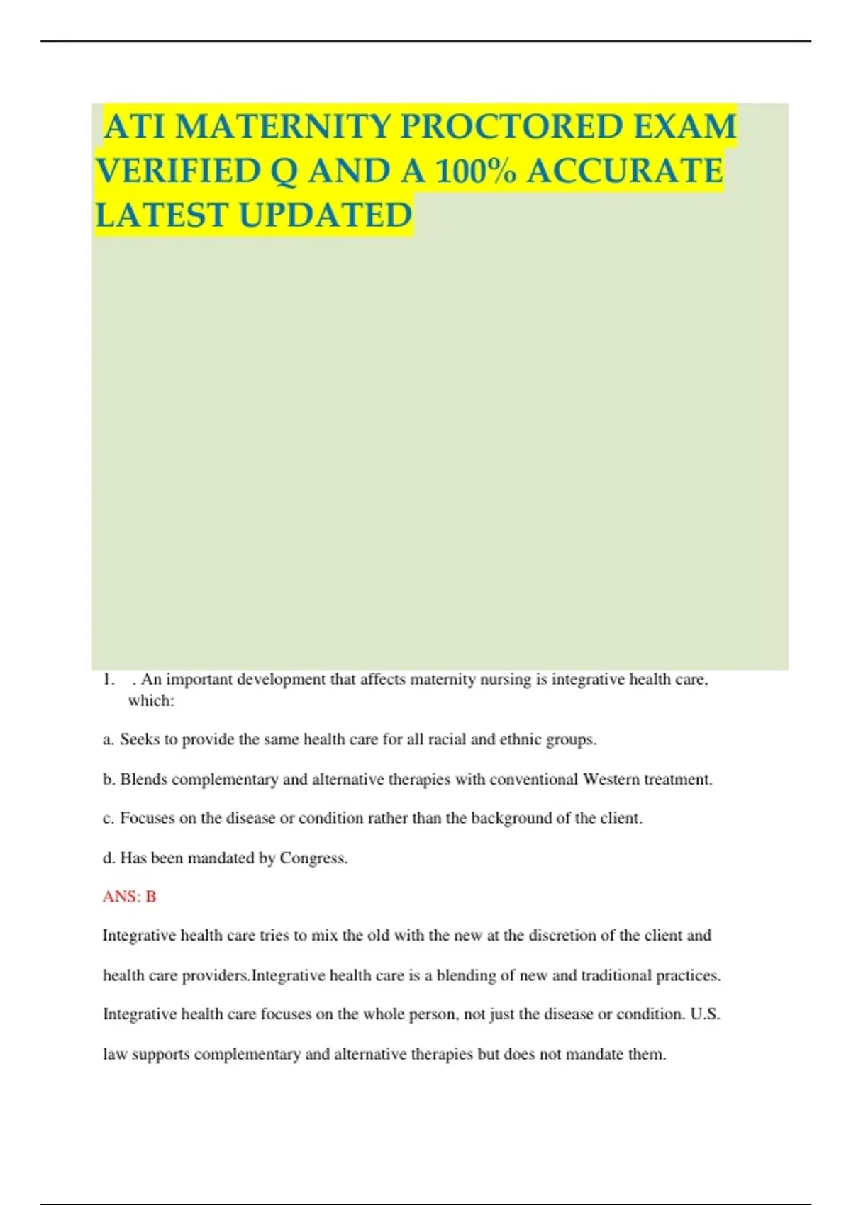 1. . An important development that affects maternity nursing is integrative health care,