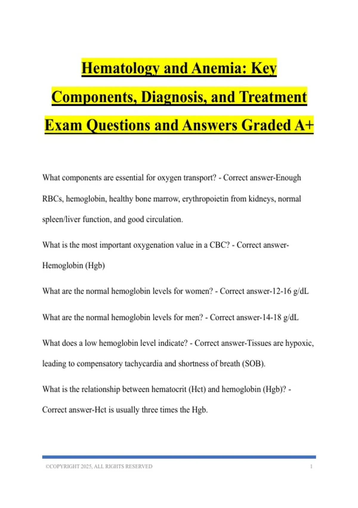 Hematology and Anemia: Key
