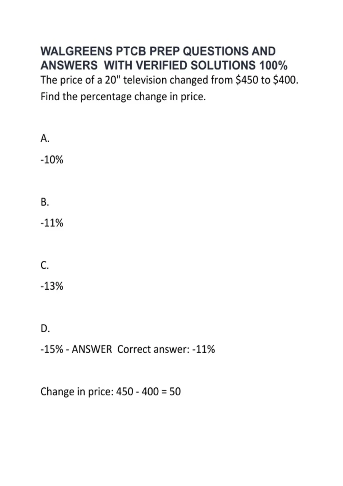 Change in price: 450 - 400 = 50