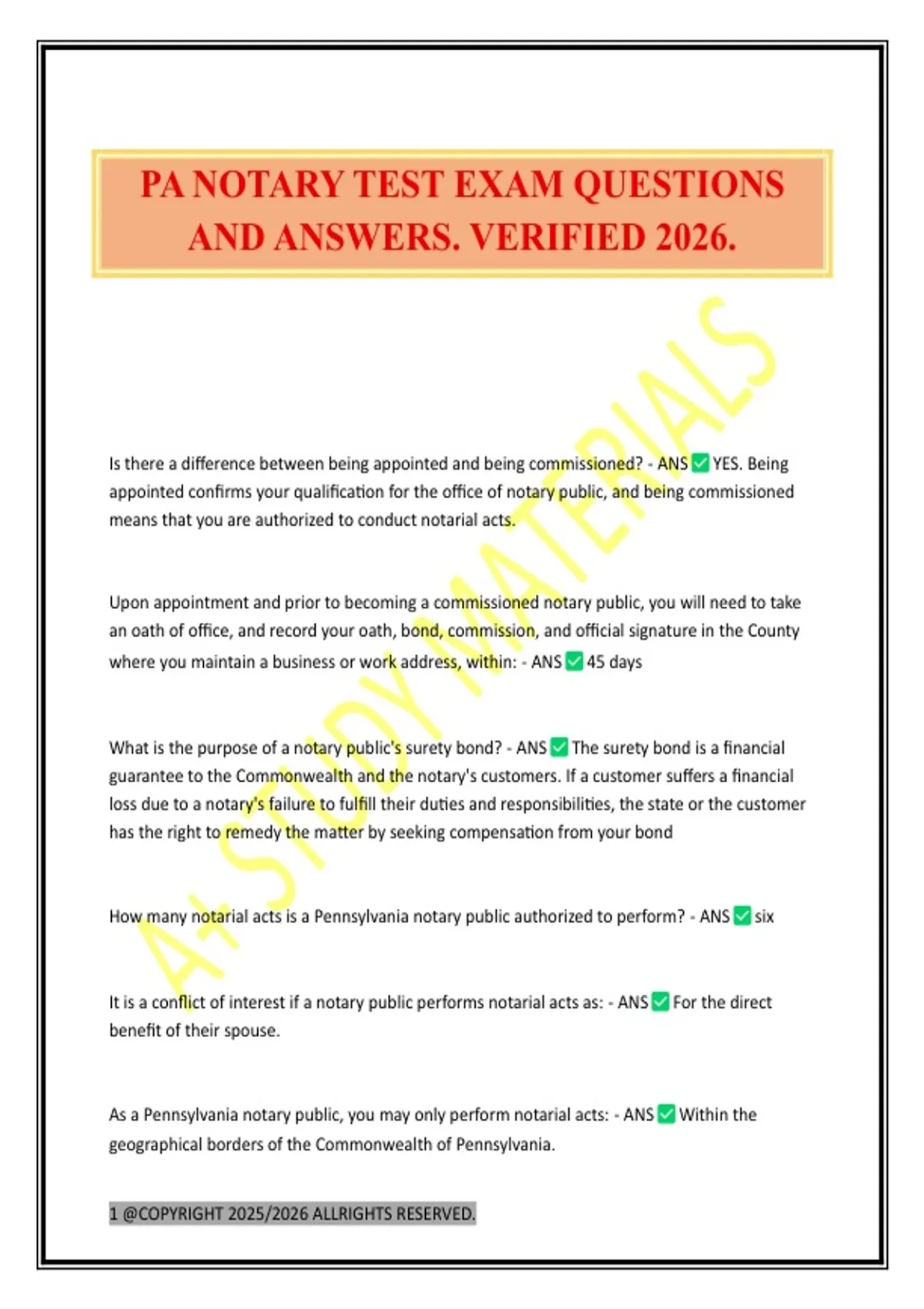PA NOTARY TEST EXAM QUESTIONS AND ANSWERS. VERIFIED 2026.