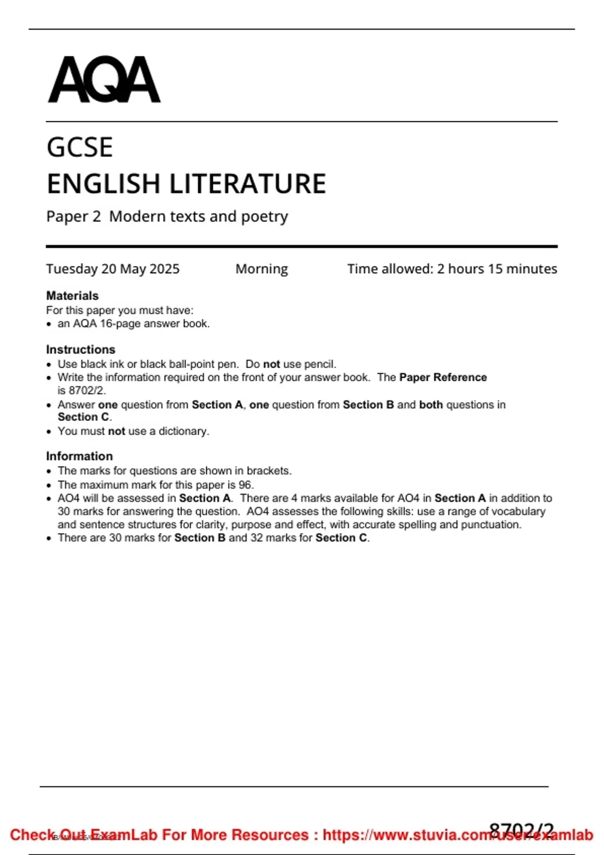 GCSE English Literature AQA Paper 2 2025