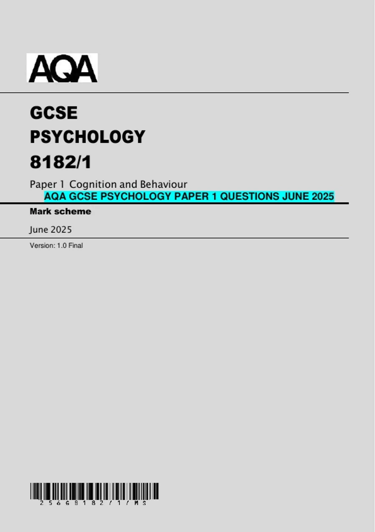 AQA GCSE PSYCHOLOGY PAPER 1 QUESTIONS JUNE 2025