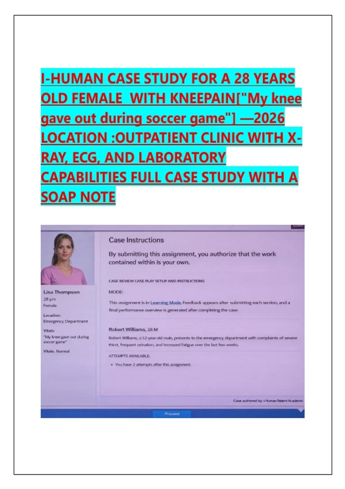 I-HUMAN CASE STUDY FOR A 28 YEARS OLD FEMALE WITH KNEEPAIN["My knee gave out during soccer game"] —2026 LOCATION :OUTPATIENT CLINIC WITH XRAY, ECG, AND LABORATORY CAPABILITIES FULL CASE STUDY WITH A SOAP NOTE