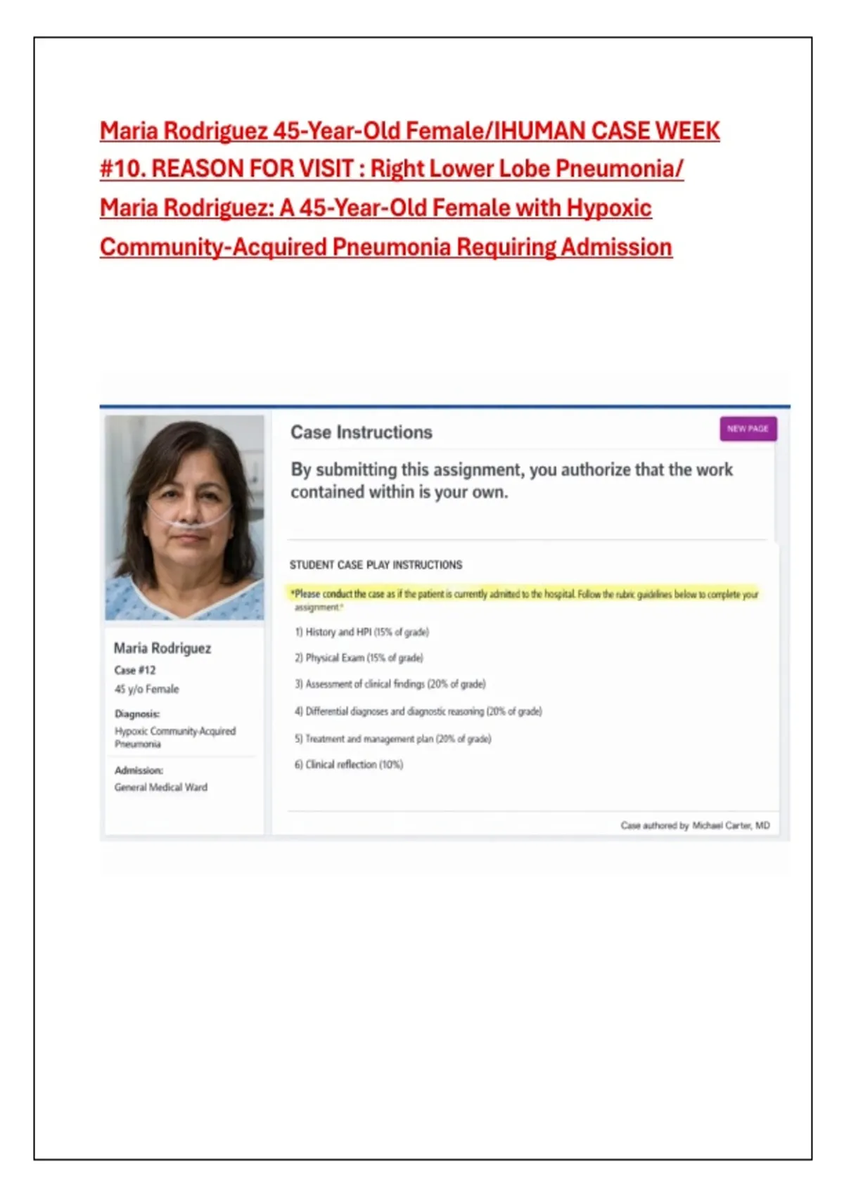 Maria Rodriguez 45-Year-Old Female/IHUMAN CASE WEEK #10. REASON FOR VISIT : Right Lower Lobe Pneumonia/ Maria Rodriguez: A 45-Year-Old Female with Hypoxic Community-Acquired Pneumonia Requiring Admission