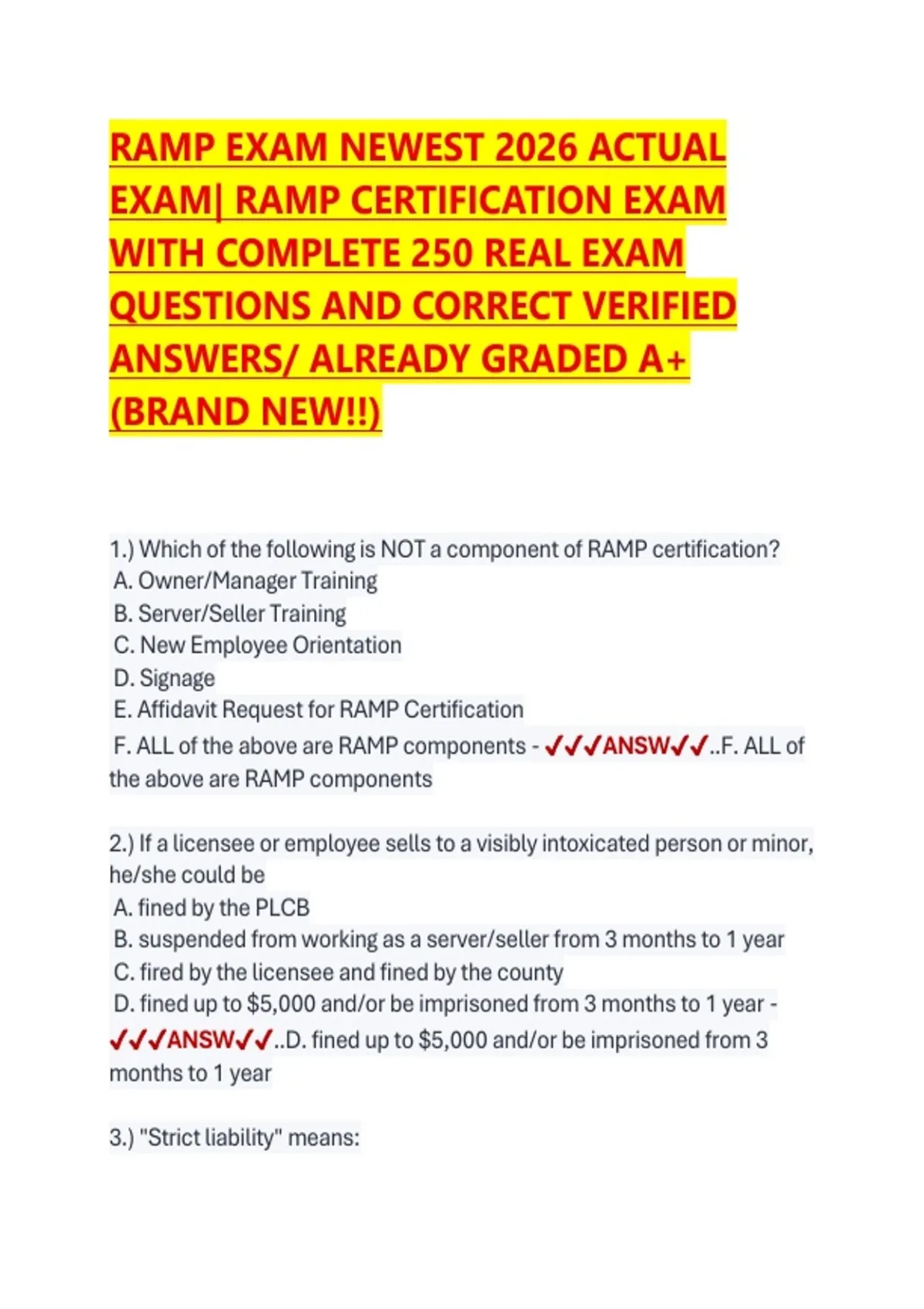 RAMP EXAM NEWEST 2026 ACTUAL EXAM| RAMP CERTIFICATION EXAM WITH COMPLETE 250 REAL EXAM QUESTIONS AND CORRECT VERIFIED ANSWERS/ ALREADY GRADED A+ (BRAND NEW!!)