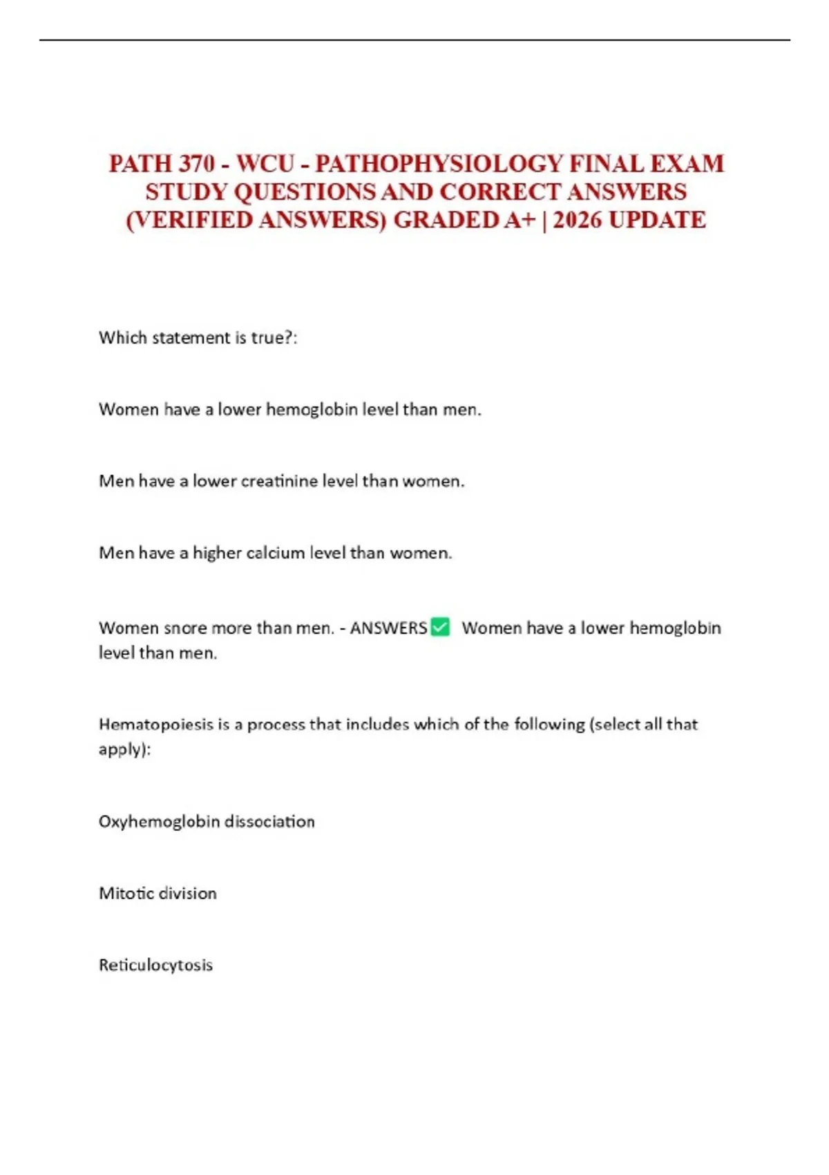 PATH 370 EXAM BUNDLED QUESTIONS AND CORRECT DETAILED ANSWERS (VERIFIED ANSWERS) GRADED A+ | 2026 EDITION | WEST COAST UNIVERSITY (with everything you need to pass)