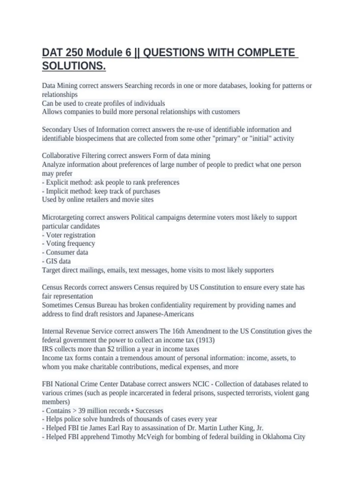 FBI National Crime Center Database correct answers NCIC - Collection of databases related to