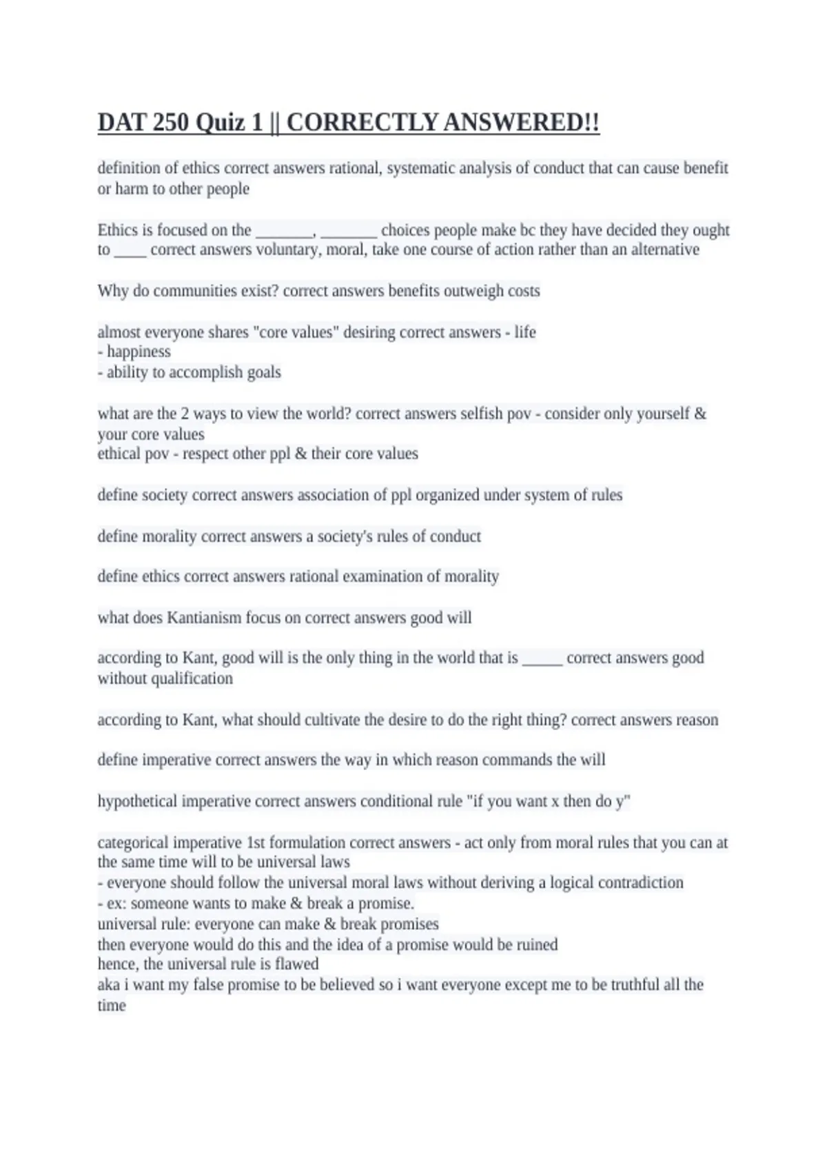 DAT 250 Quiz 1 || CORRECTLY ANSWERED!!