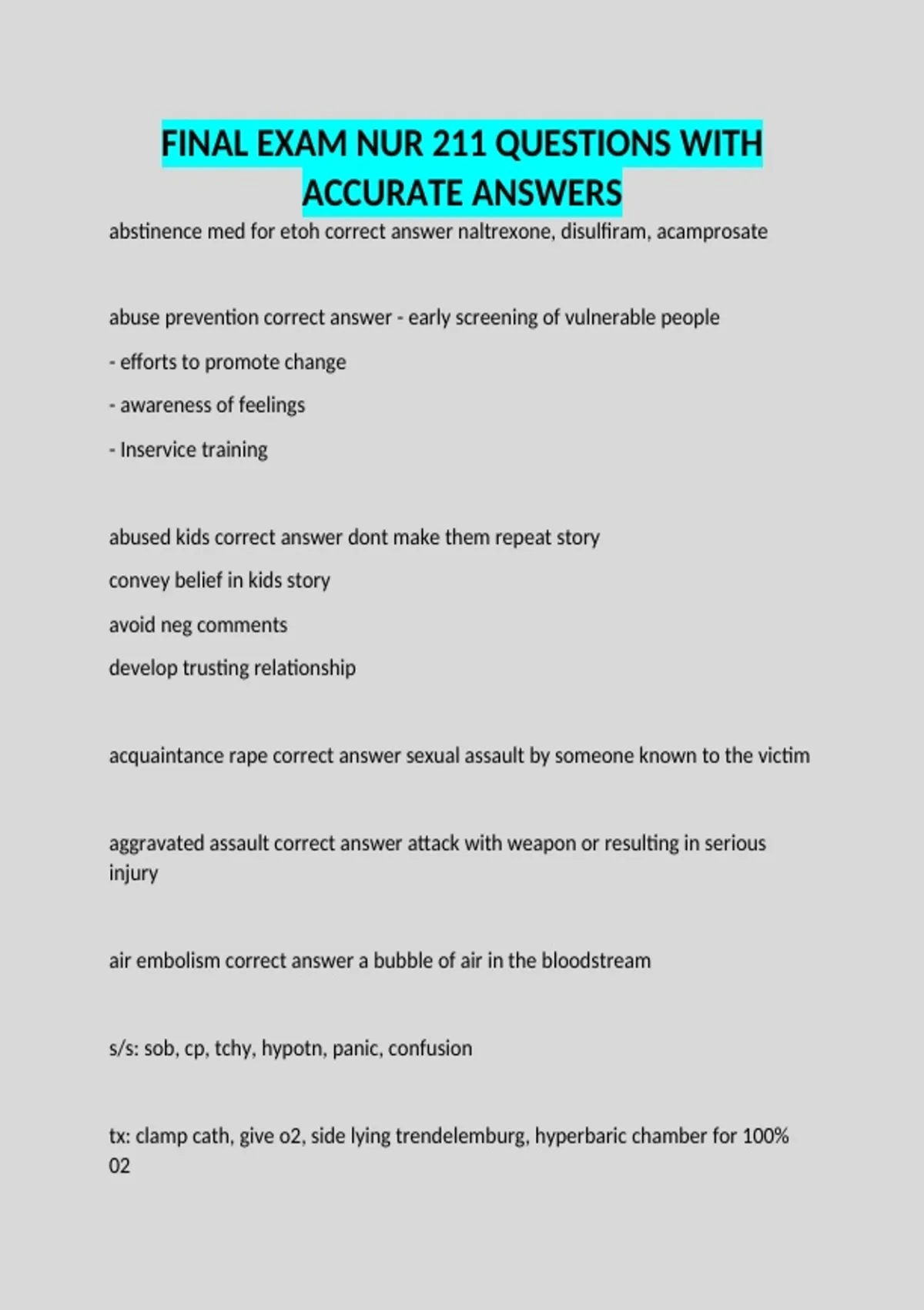 FINAL EXAM NUR 211 QUESTIONS WITH ACCURATE ANSWERS