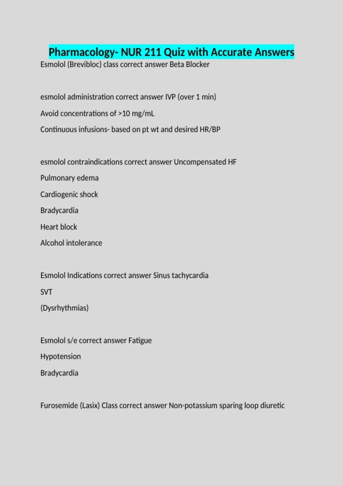 Pharmacology- NUR 211 Quiz with Accurate Answers